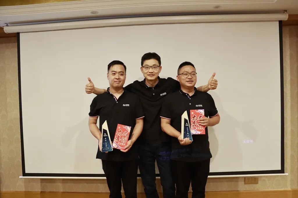 會議上還進行了上半年優秀員工的表彰,有群英沖鋒獎、拼命三郎獎、無限可能獎、開拓標兵獎、最具團隊價值獎、雷厲風行獎,由總經理張紅祥和副總經理曹衛華為他們頒發獎杯和獎金。
