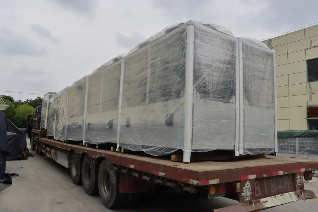 這12臺大機組都是發往鎮江的。小編去了解了一下,這是鎮江高新區半導體及通信產業標準廠房采暖制冷項目,采用12臺48匹天舒空氣源采暖制冷熱泵末端連接風盤和組合式空調箱,滿足8000㎡廠房的采暖制冷需求。等項目完工,再奉上后續美圖哦~