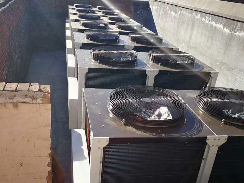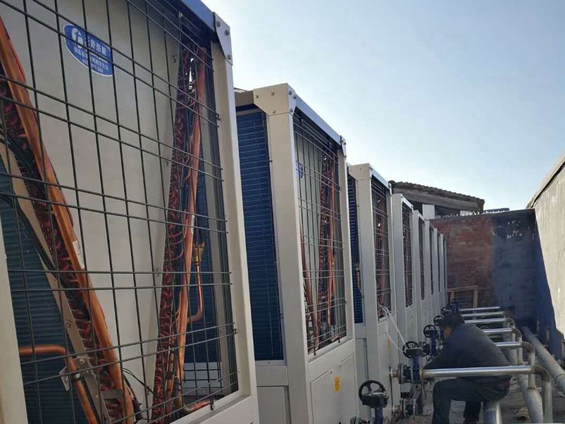項目位于山西省晉城市,采暖面積6000平方米,末端采用鑄鐵暖氣片。使用了8臺天舒超低溫24P匹組。經過了2017年-18℃的極寒天氣的考驗,運行穩定。