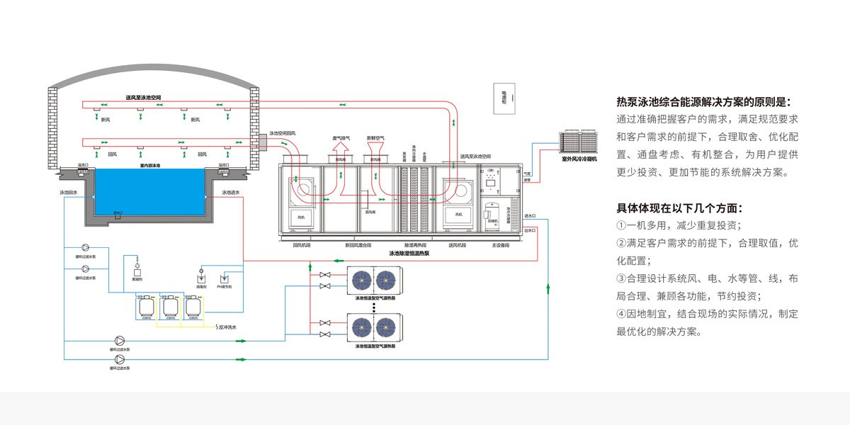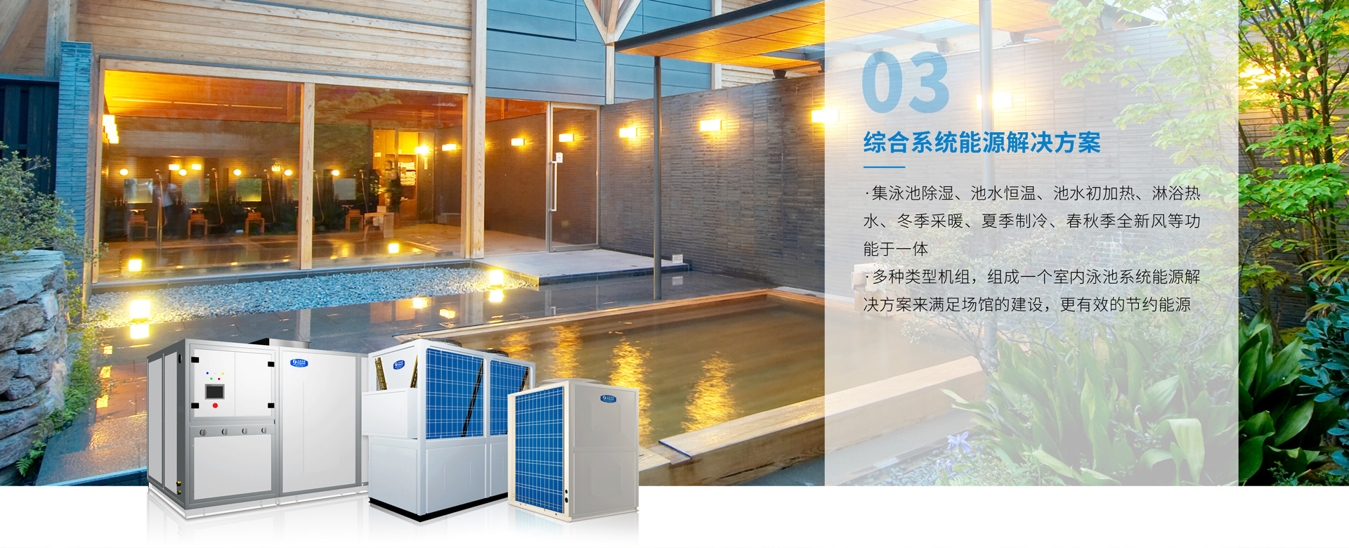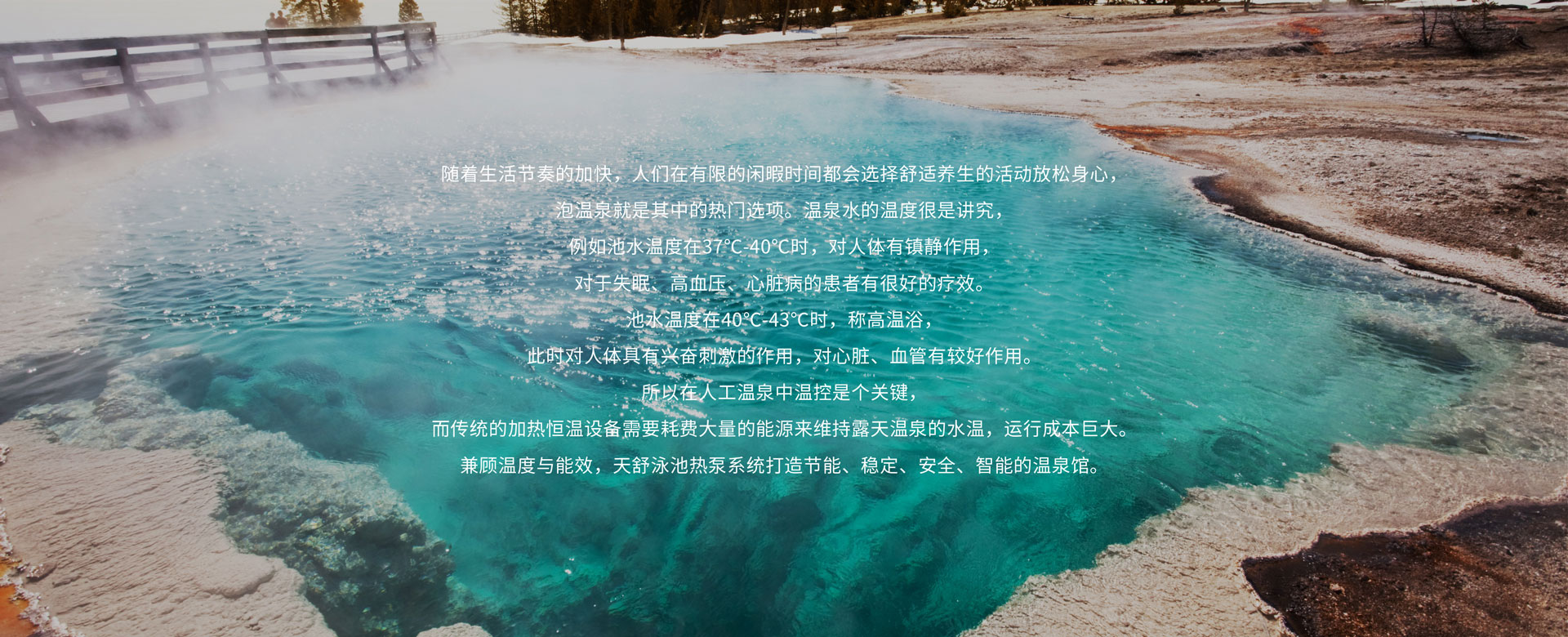 溫泉池大多是露天的,需要根據每個溫泉池的大小和溫度要求,結合當地環境的天氣狀況,制定系統能源解決方案,兼顧溫度與能效,打造高效節能的溫泉場所,減少運行成本。