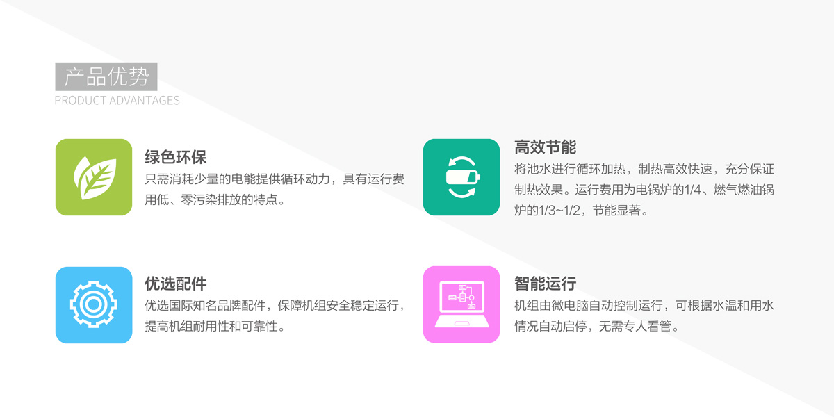 按照溫泉池具體需求,設定參數,由系統智能控制,全程自動運行,無需專人看管,減少人工成本。