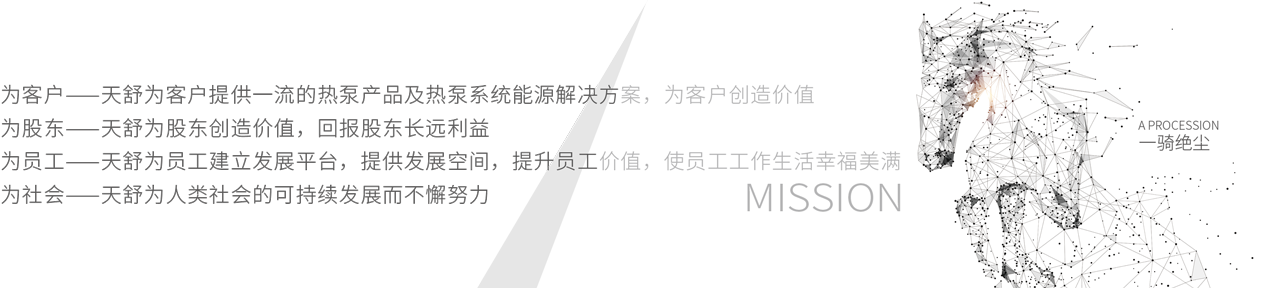 天舒致力于在熱泵及熱泵系統能源解決方案領域,面向市場不斷推出應用于商用熱水、采暖制冷、泳池、烘干、冷熱回收、家用熱水等領域的一系列優質、節能、環保的熱泵產品,竭誠為客戶提供專業的熱泵產品及熱泵系統能源解決方案,為客戶創造價值。